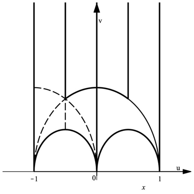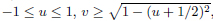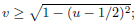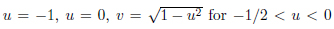 the same portion of the real axes wrt the common one, such as, for example, u = 1, v = √1 − u2 and v = √u − u2.