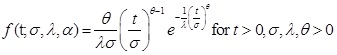 where, λ, σ are the scale parameters and θ respectively shape parameters.