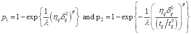 Where n is the sample size, c is the acceptance number, and p is the probability of getting a failure within the life test schedule t 0,. If the product lifetime follows an OELLD, then p = F(t 0). Usually, it would be convenient to determine the experiment termination time t 0 as t 0 = δq 0 tq 0 for a constant δq 0 and the targeted 100q-th lifetime percentile, t q 0. Suppose tq is the true 100q-th lifetime percentile. Then, p can be rewritten as