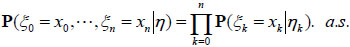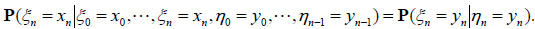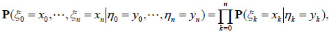 Let ζ = (ξ, η) be random vector, where ξ = (ξ 0, ξ1, ···), η= (η 0,η1, ···) are two different stochastic processes, η is hidden (η takes values in Y = {ω 0, ω1, ···}), and ξ is observable (ξ takes values in set X = {θ 0, θ1, ···}).